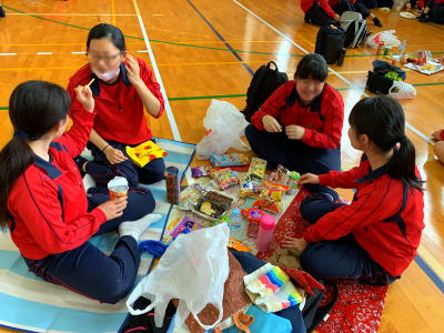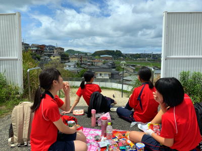 その後は友人たちと弁当やおやつを頬張り、楽しいひと時を過ごしていました。最後には生徒たちの晴れやかな表情が、雲の切れめにのぞかせる青空を連れてきてくれました。「こんな歓迎行事もアリですね。楽しかったです。」「先輩方とも仲良くなれました!」と感想を述べてくれた新入生もいました。