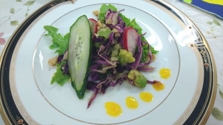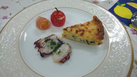 | くるみ入り野菜サラダ | キッシュ・タコのカルパッチョ・かわいいトマトのカプレーゼ風 | |