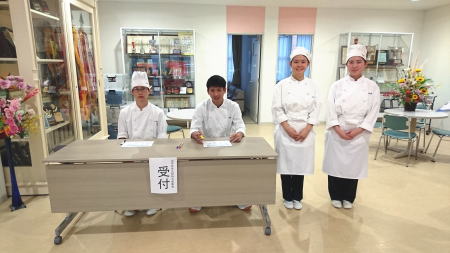 | 受付も生徒が行いました。 | 一人ひとりに笑顔で対応していました。 | |
