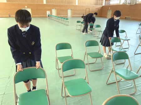 | 始業式の様子 | 入学式の設営 | |