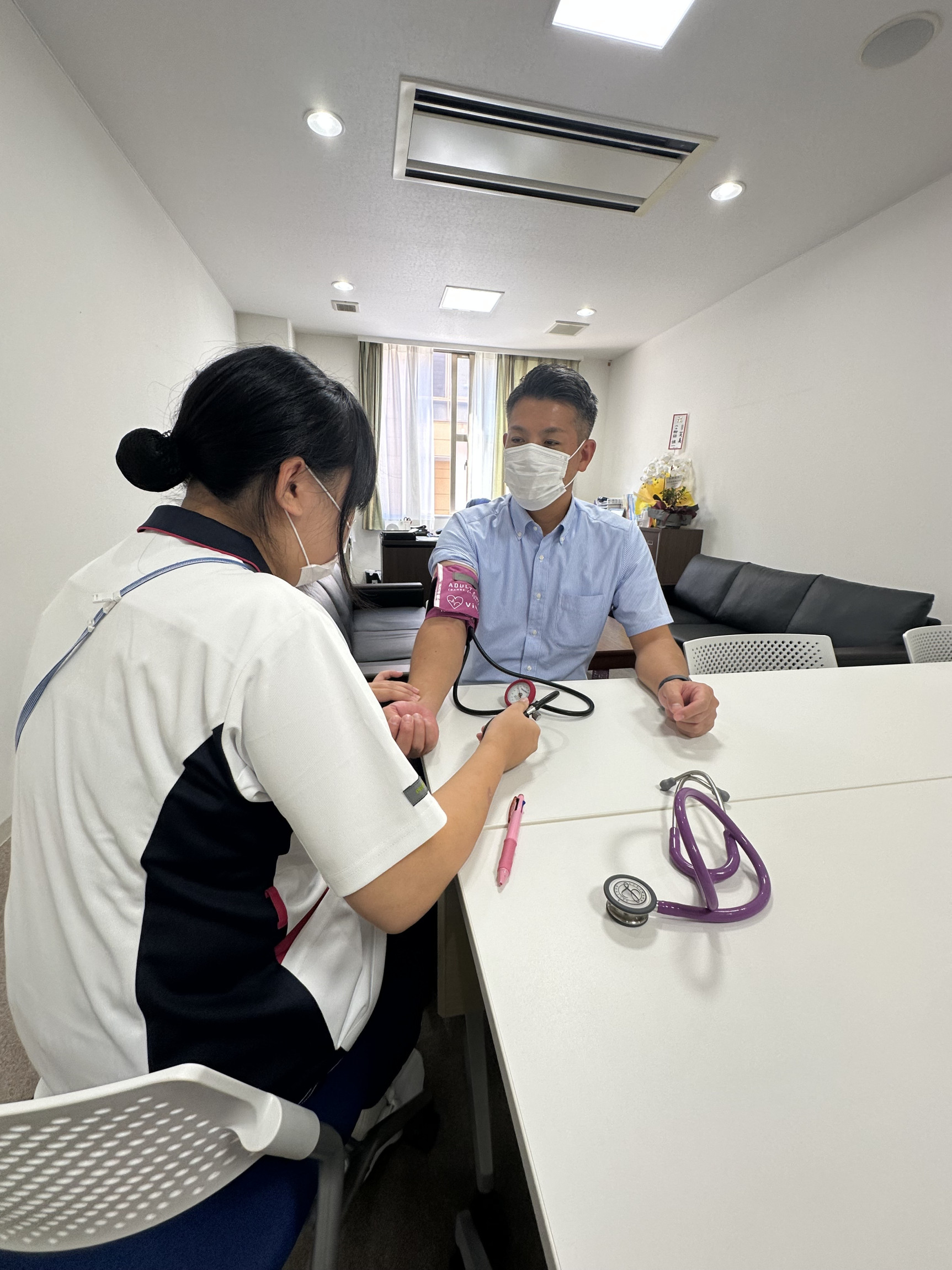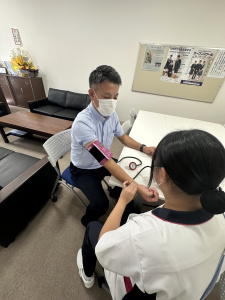 今日は、昨日戴帽式を終えた衛生看護科2年生の患者役でバイタルチエックを受けました。