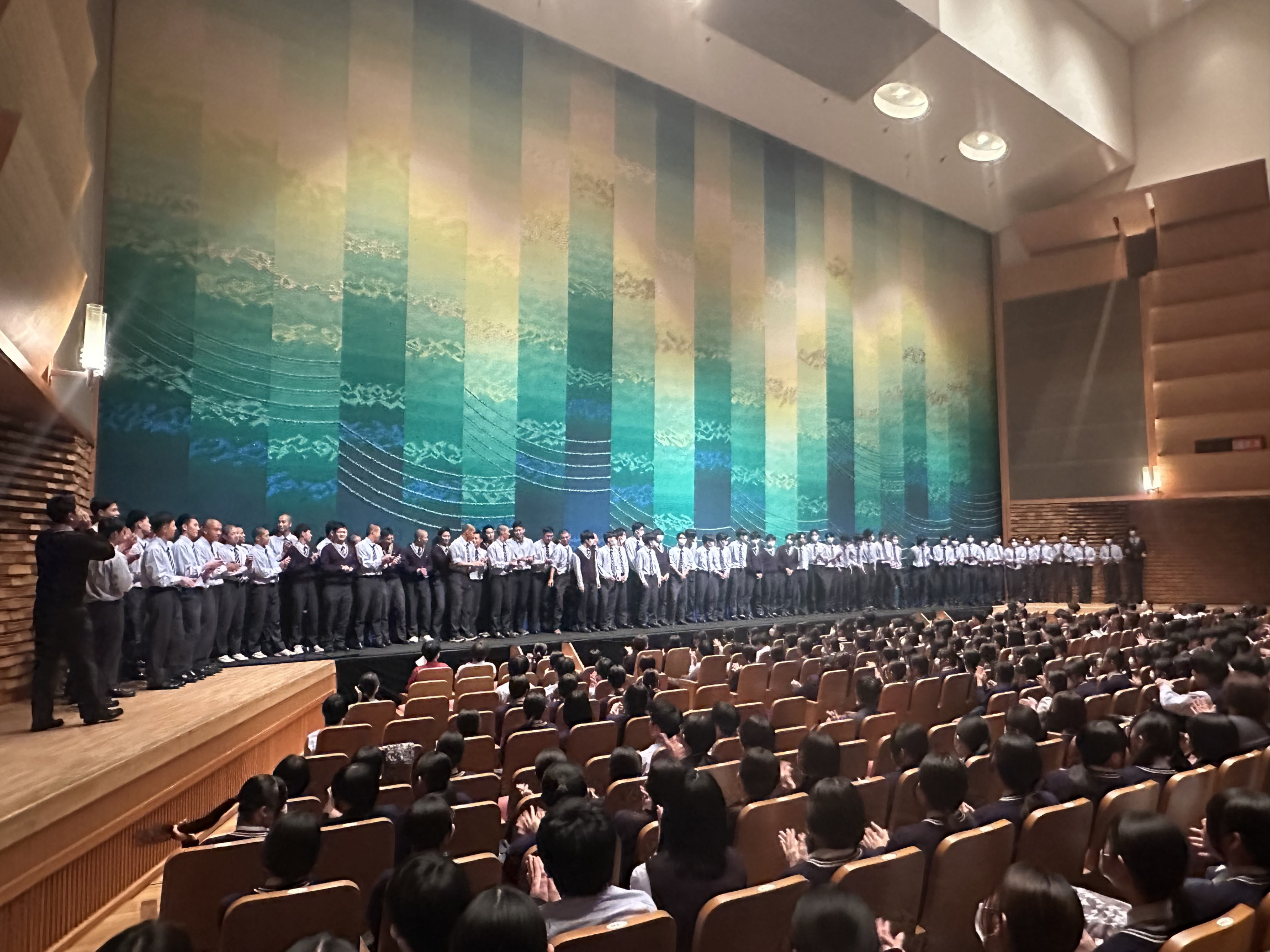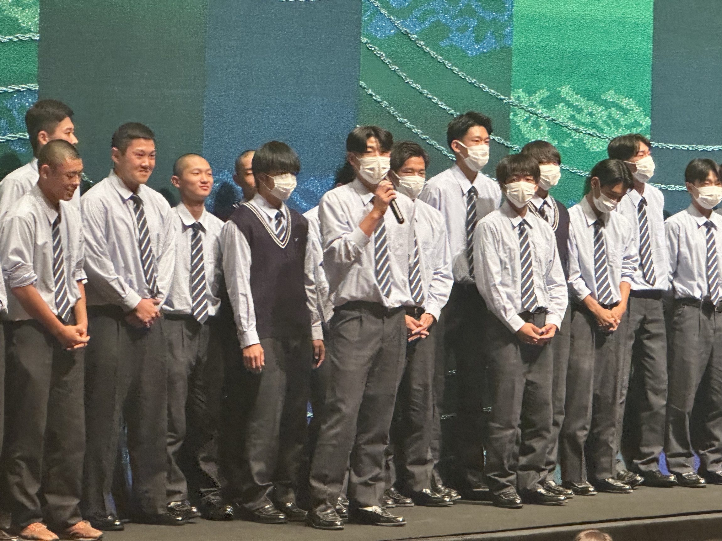 昨日の芸術鑑賞会、山崎照英選手の報告会に続き、サプライズで今週末に控えたサッカー部の選手権大会決勝へ向けて、生徒会、野球部3年生が中心となって、サッカー部へエールを送りました。