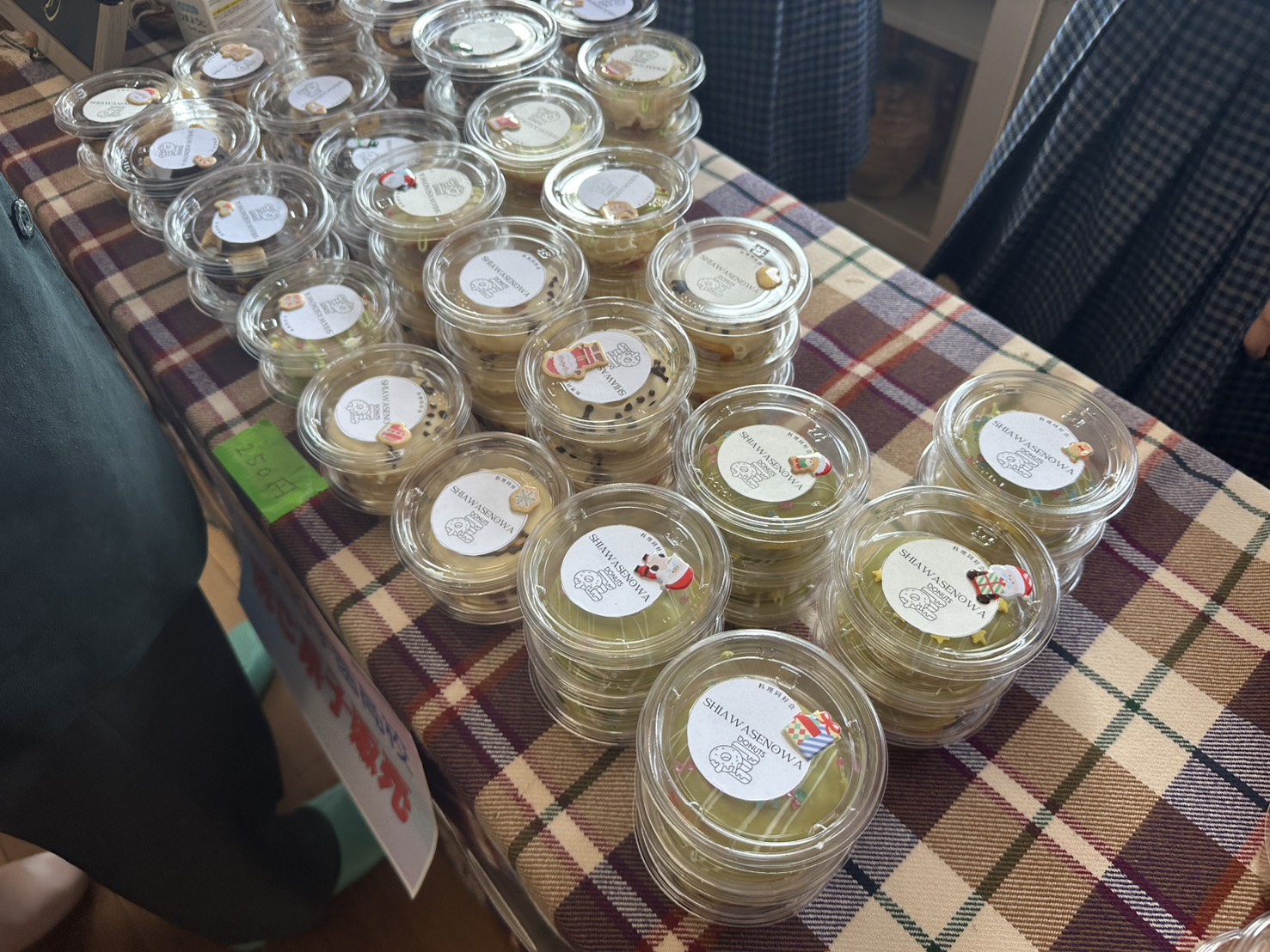 生徒たちの手作りスイーツを笑顔で購入してくださる姿。