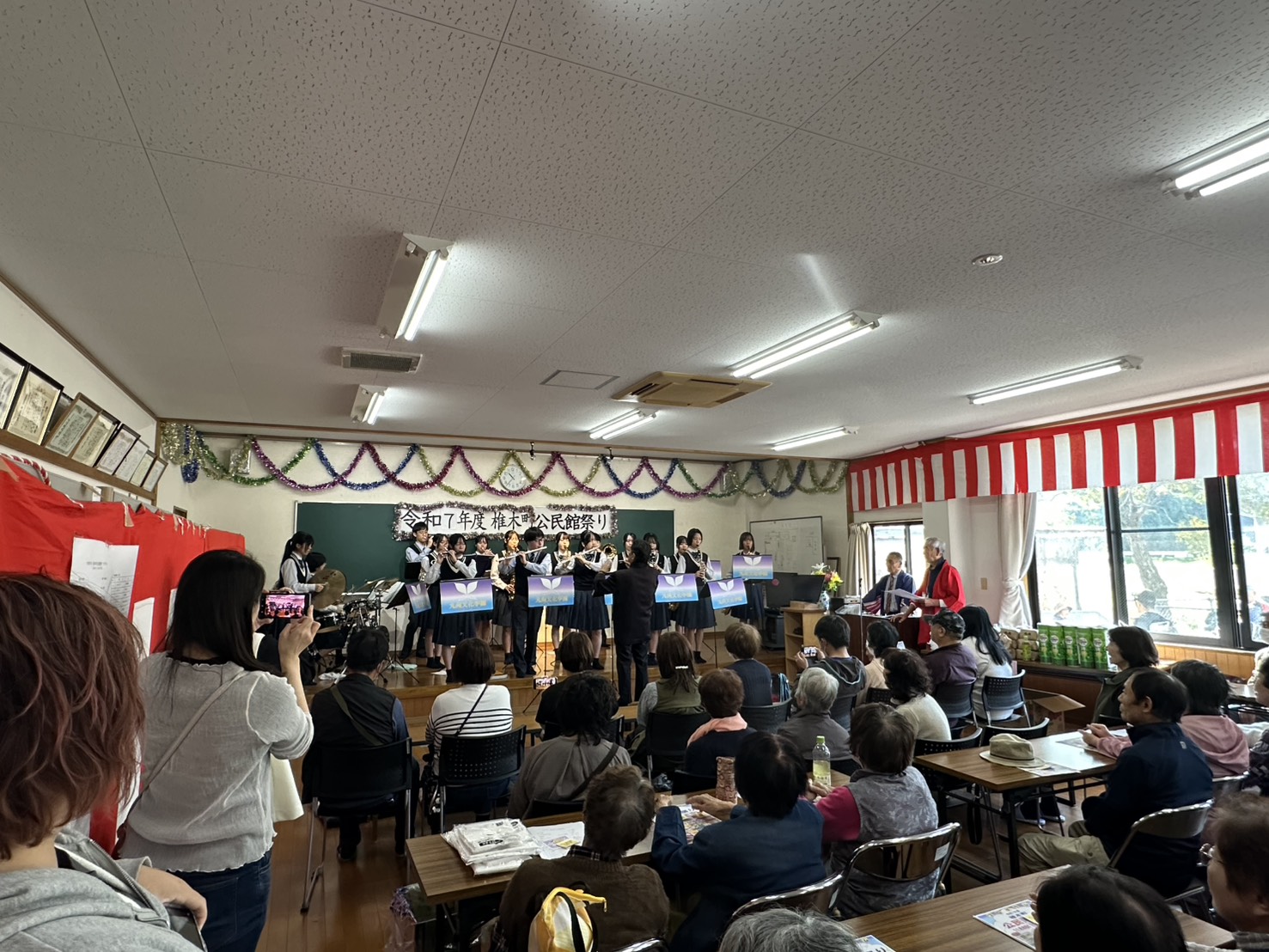 地元、椎木町公民館祭りが開催され、吹奏楽部と料理同好会が参加しました。