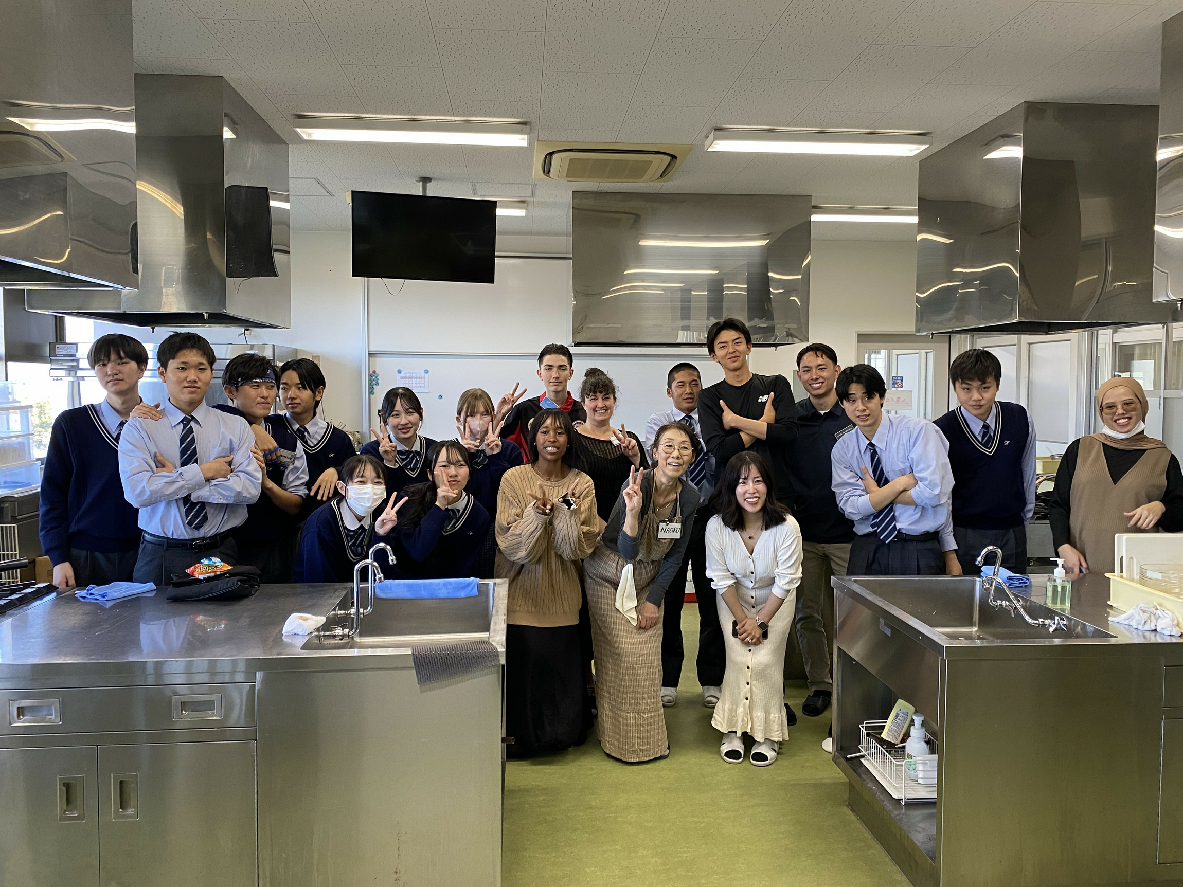 場所は本校調理実習室にて、佐世保にお住まいのネイティブの方々と一緒に料理を作り、交流するというものです。