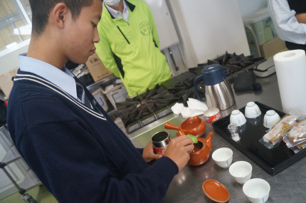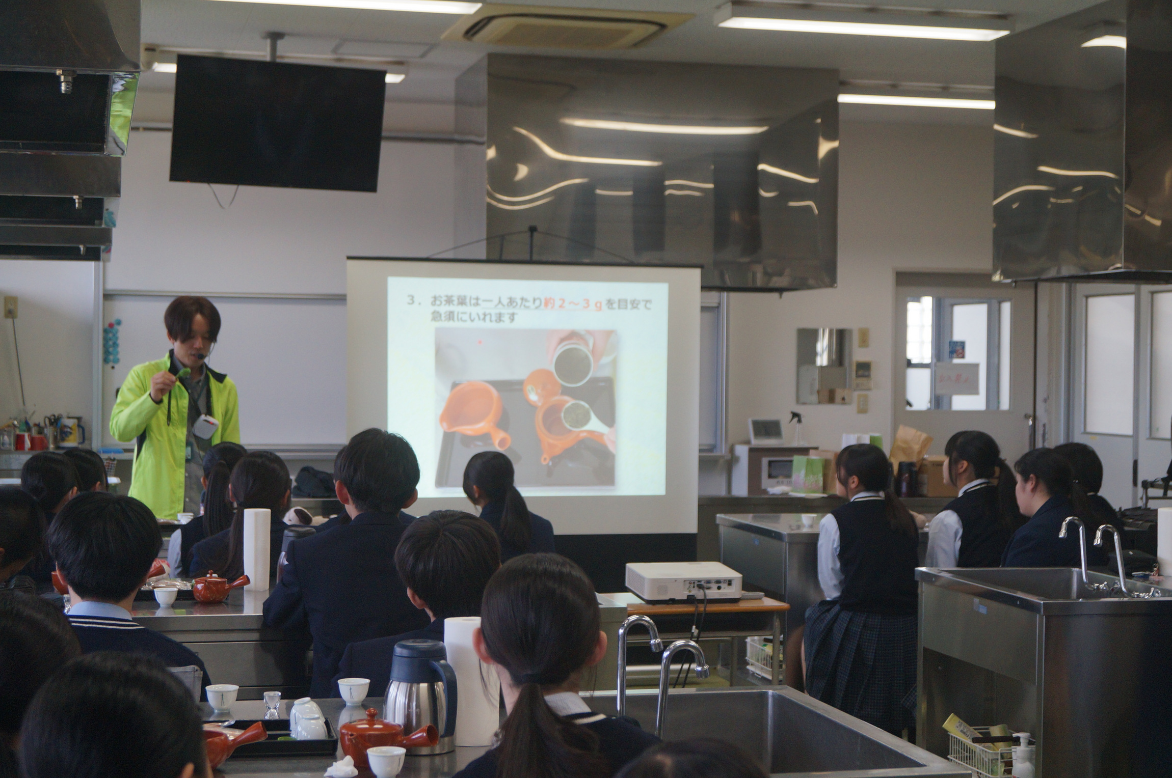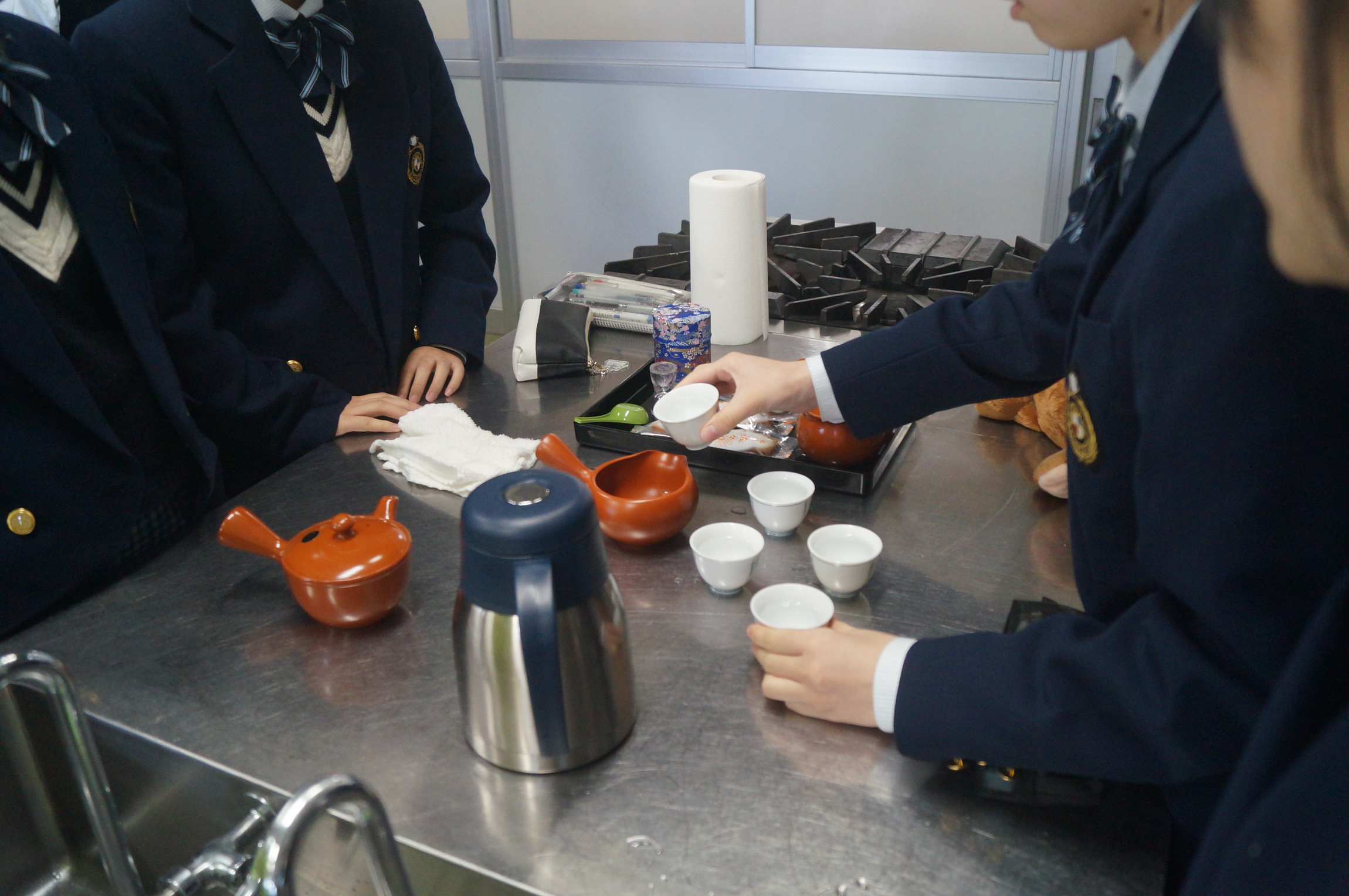 食物調理科1年生を対象に、今年度も「お茶の淹れ方教室」を行いました。