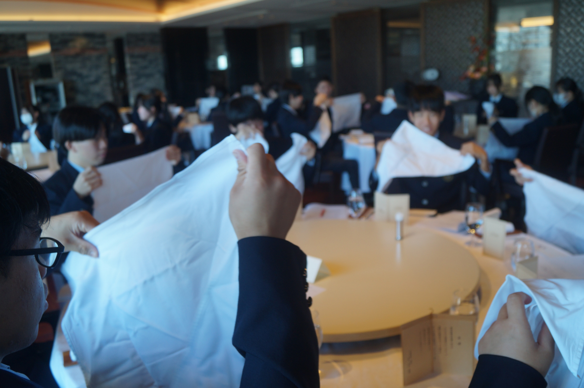 慣れない形式に戸惑う場面もありましたが、生徒たちは互いに協力しながら食事を進め、食に携わる者としての視野をさらに広げる貴重な学びの時間となりました。