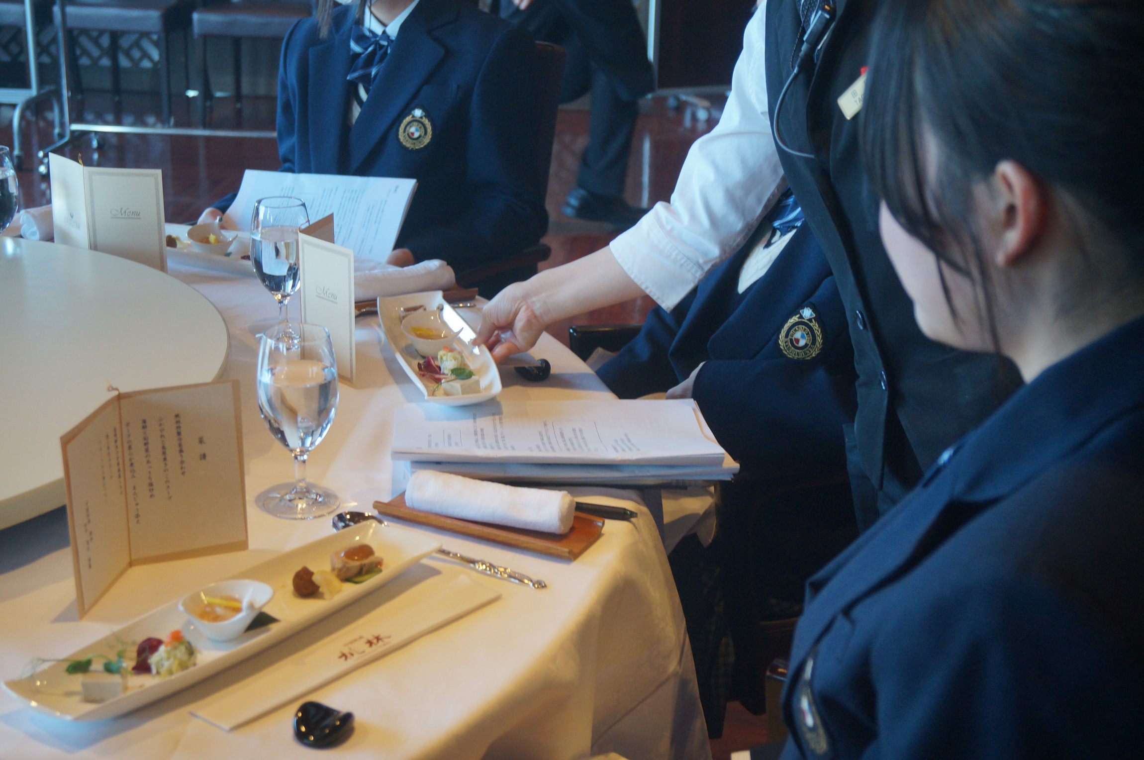 また、料理の提供順序や箸の扱い、会話や動作のタイミングなど、場の空気を大事にする立ち居振る舞いについても実際のコース料理を通して体験し、理解を深めることができました。