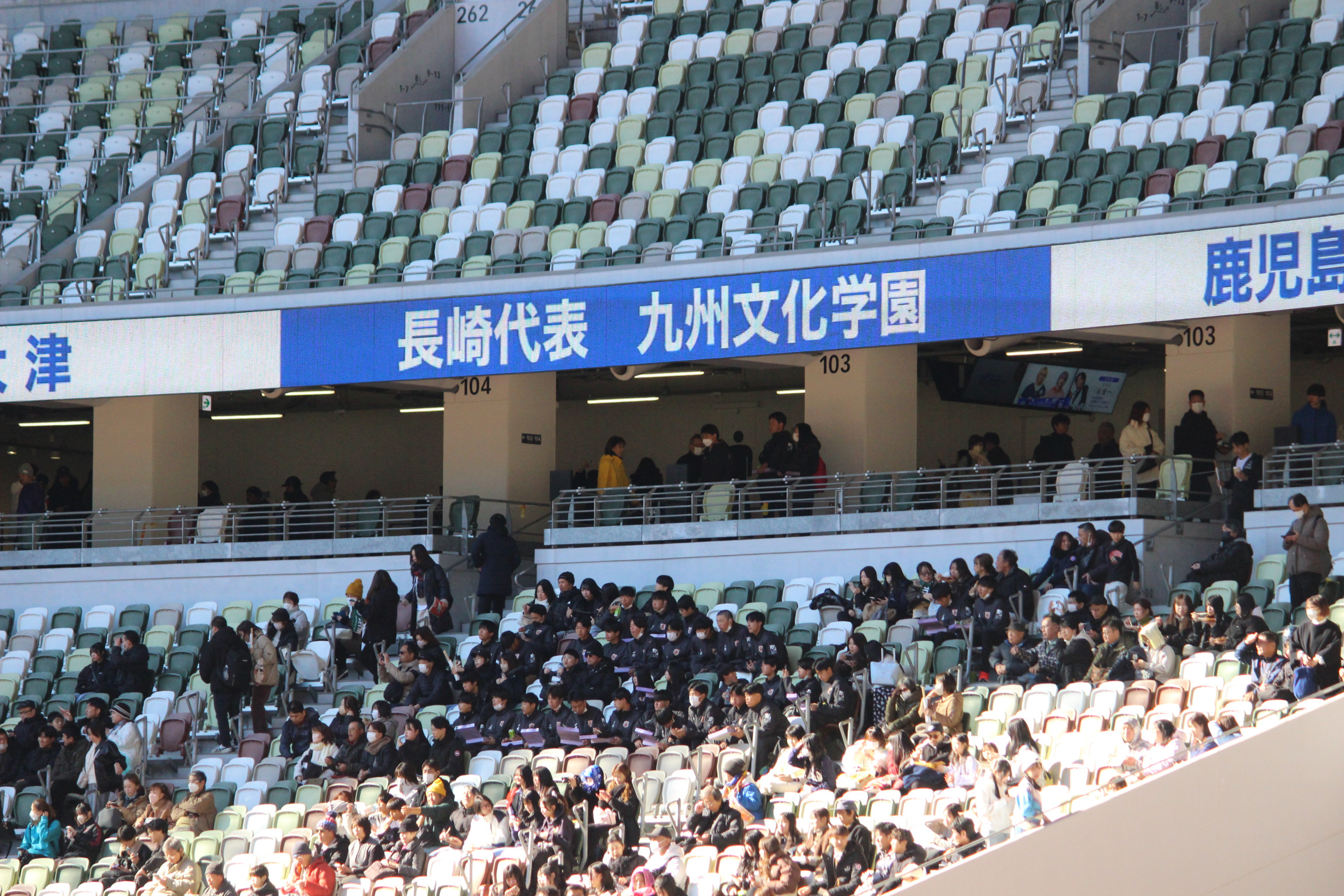 「長崎代表 九州文化学園」の電光表示に気持ちの高ぶりを感じます。