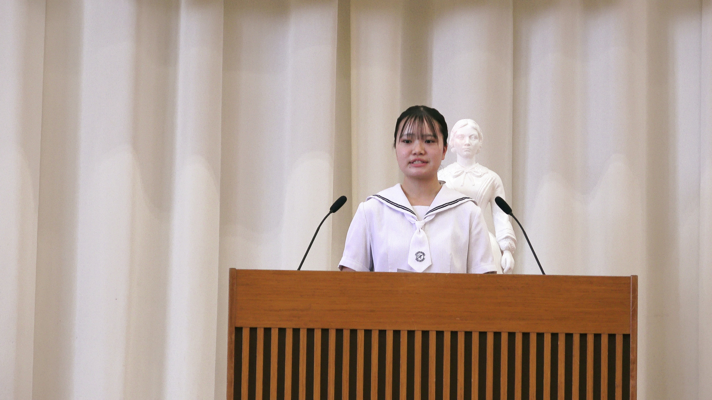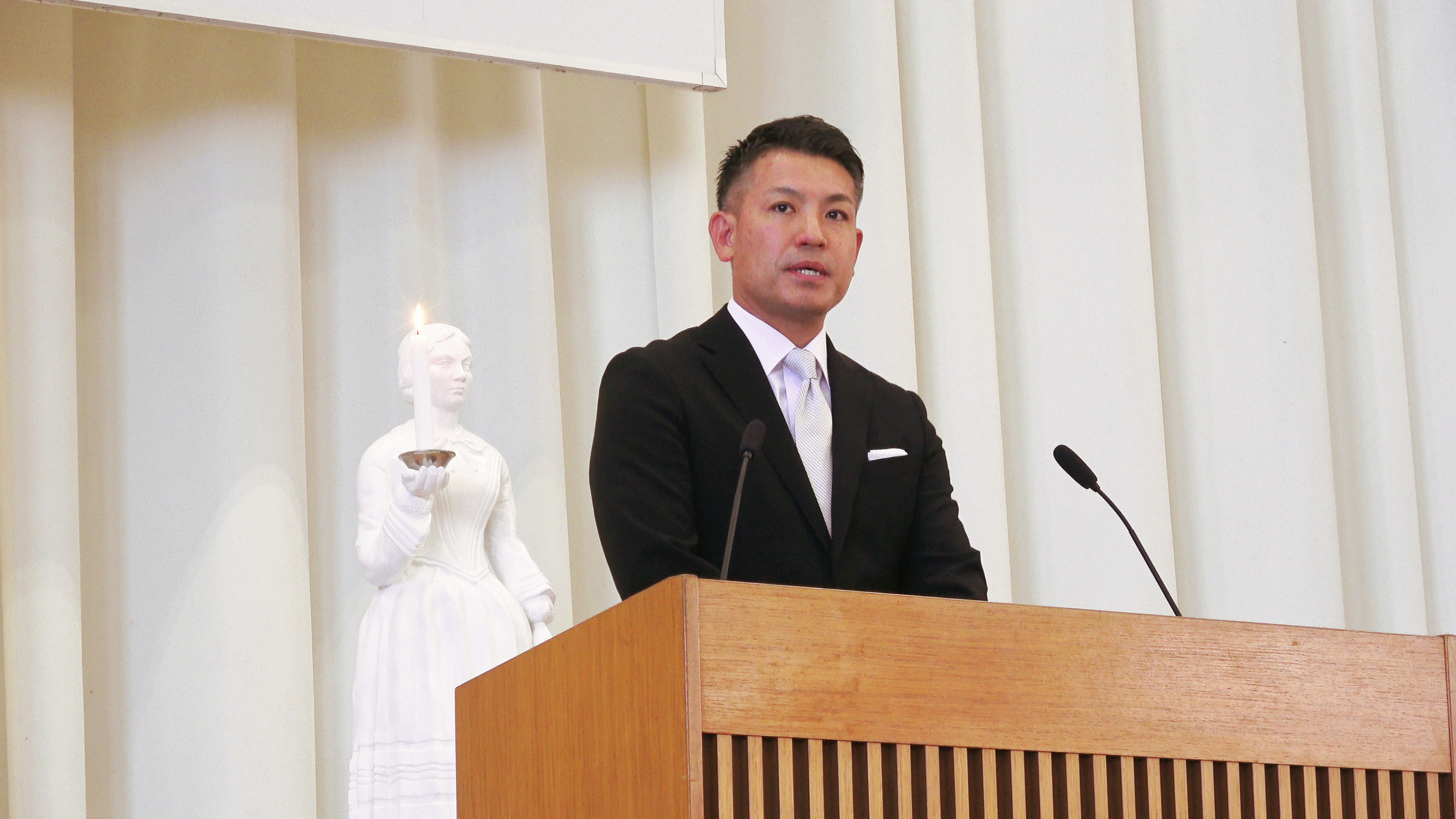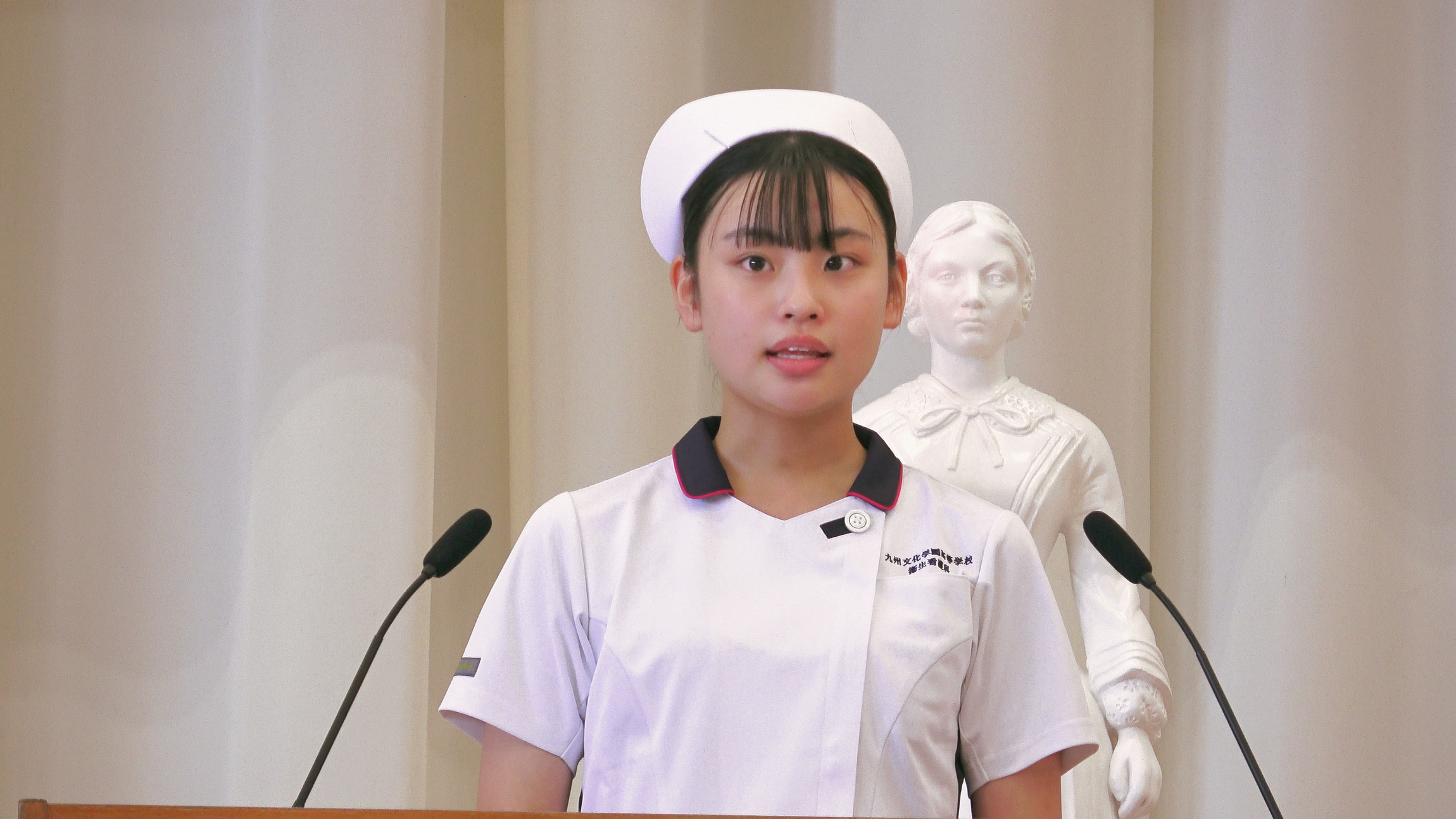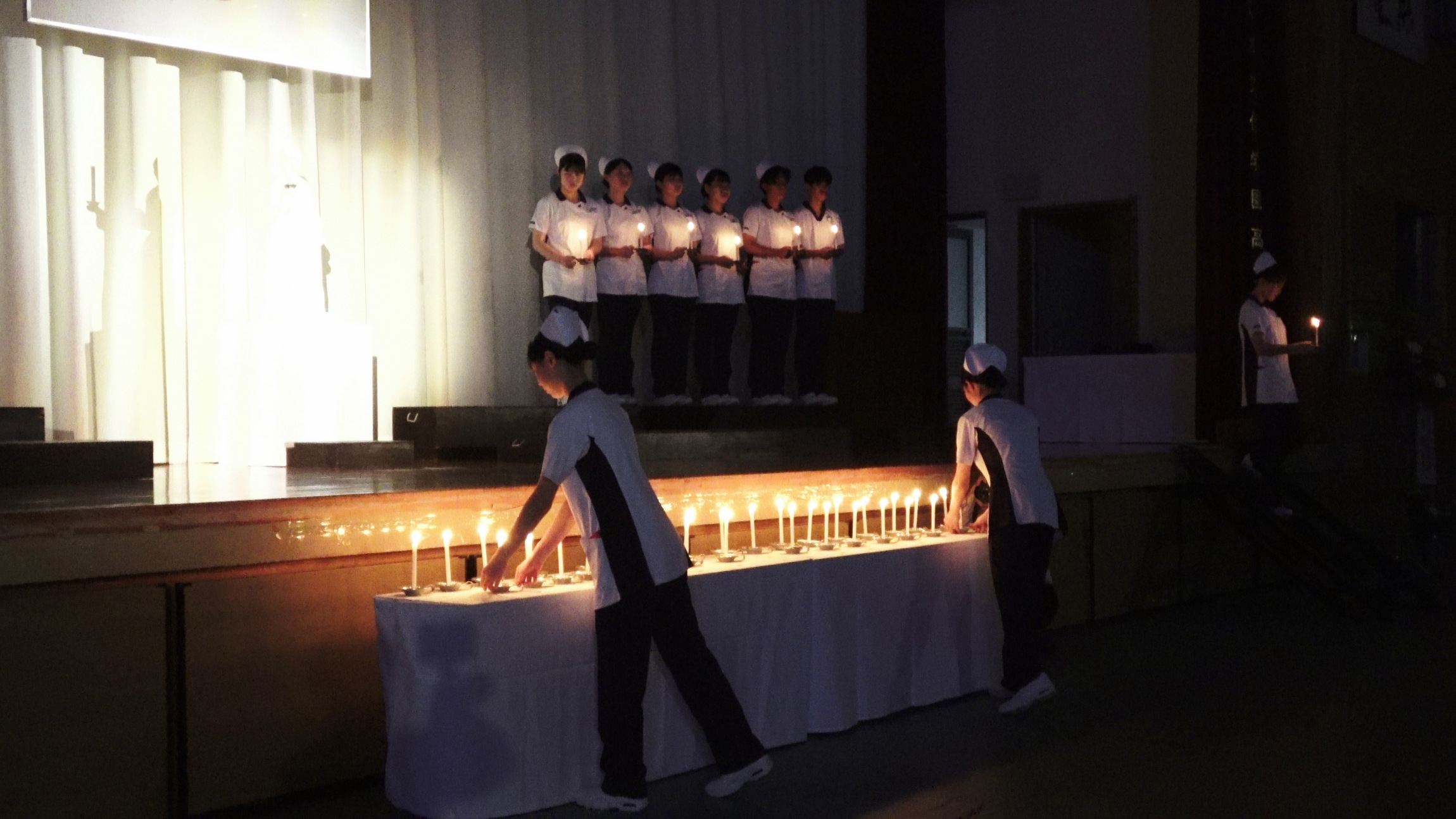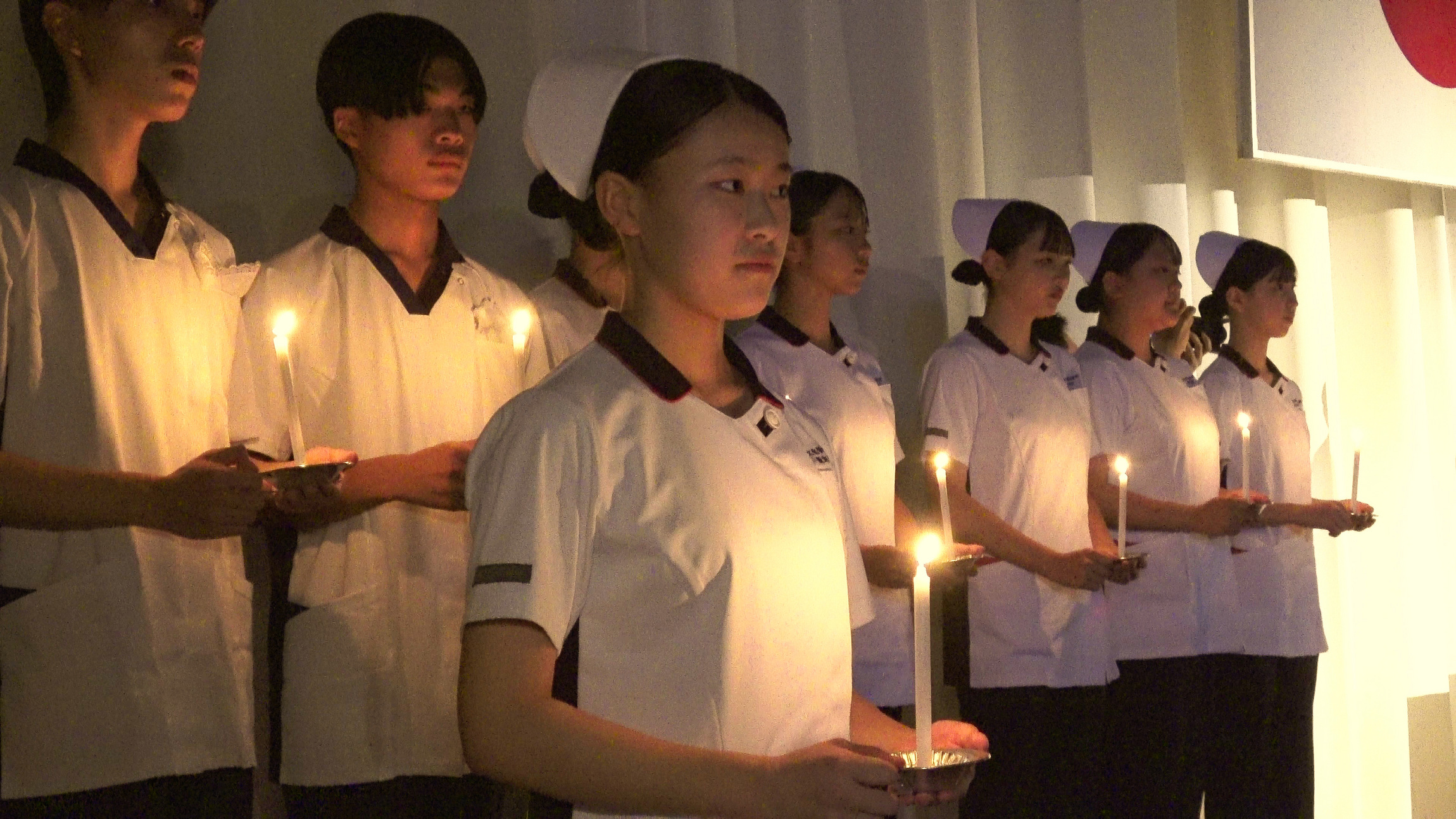 式では、ナイチンゲール誓詞の斉唱やキャンドルサービスが行われ、会場は緊張感と厳粛な雰囲気に包まれました。