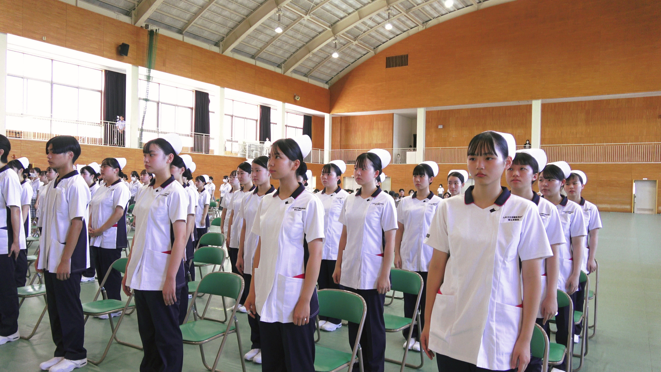 10月9日(木)、本校体育館において「第55回 九州文化学園高等学校 衛生看護科 戴帽式」が厳かに挙行されました。